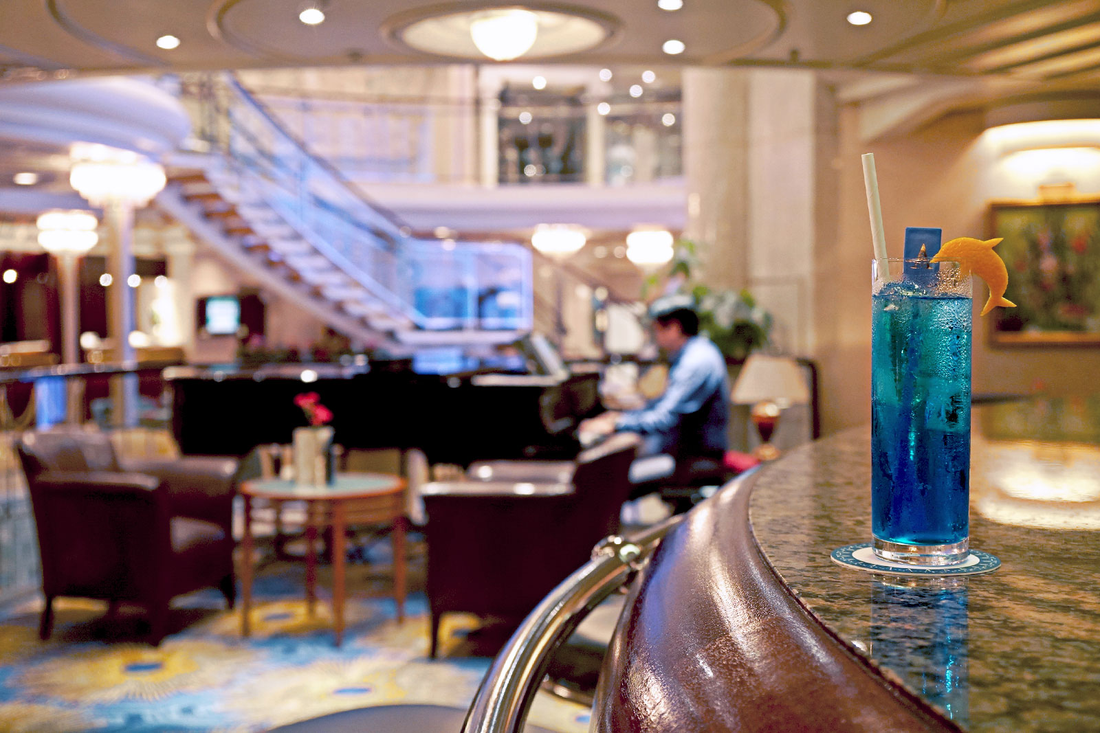 バルコニーで2時間ほど眠ってから夕食をとった後、ガイドブックを見て5Fのアスカプラザに隣接している「ピアノバー」へ行くことに。中央にはバーカウンターがあり、手前にはグランドピアノが置かれていて、反対側には落ち着いた茶色の革張りのソファーが並んでいる。カウンターに座って、メニューを見た。ウィスキーやハウスワイン、ビール、カクテルの他に、おつまみとしてオリーブとスモークサーモン、チーズの盛り合わせなどもあった。