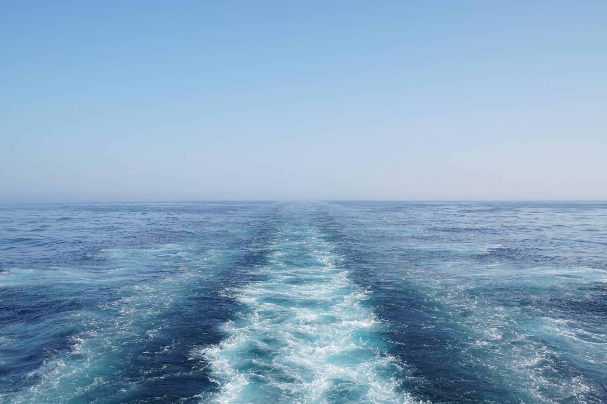 デッキを3周ほどした後にベンチに座った。船の上で散歩をして、ぼーっと美しい水平線を眺められるなんて、これ以上の休日の過ごし方なんてないのではないか、と思えてくる。朝、流れていた船長の船内放送によると、今は水深500mの海域を時速33kmで進んでいるとのこと。このままずっと船で世界中を旅していたい、そう思える朝だった。
