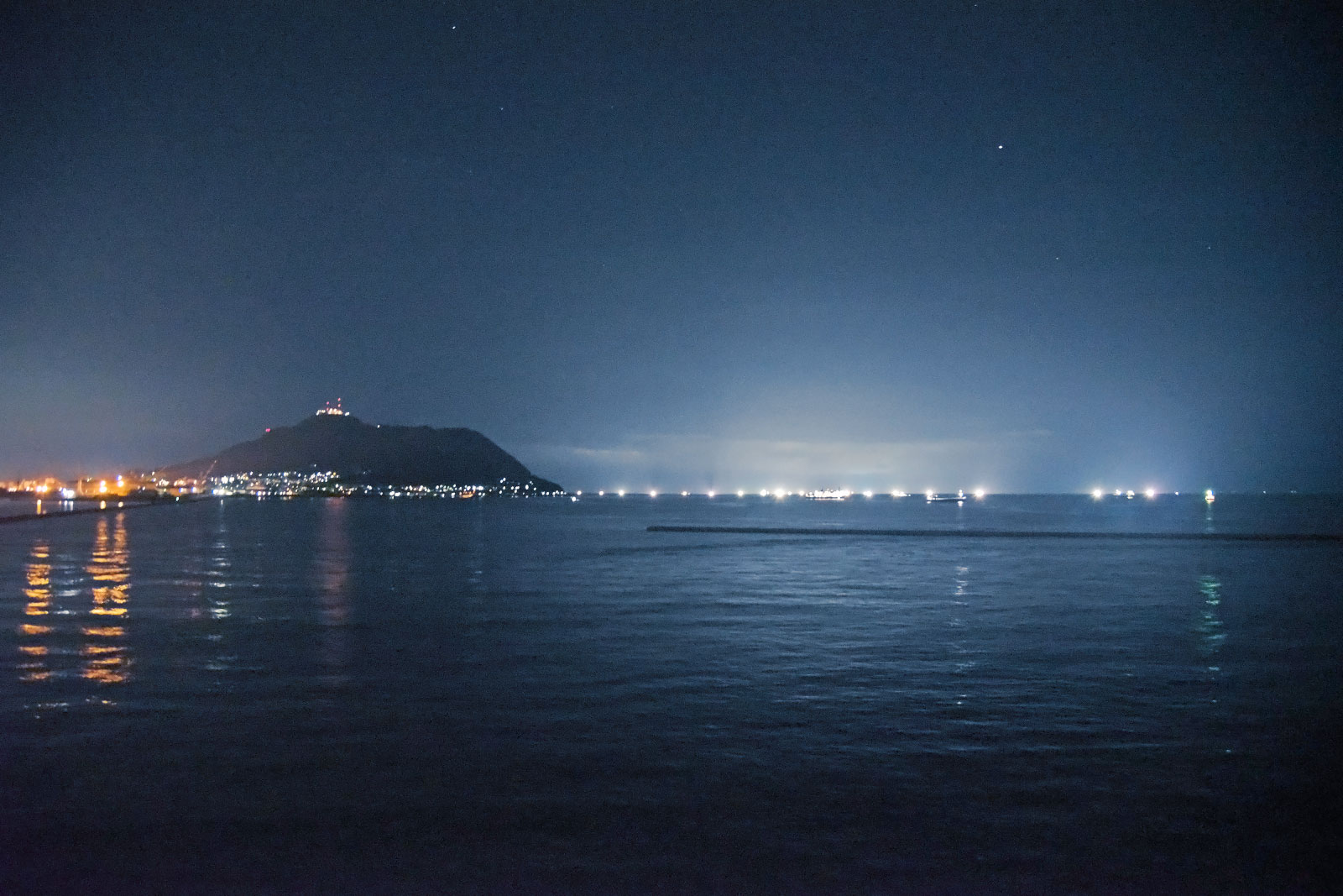 音楽が鳴り響く賑やかな雰囲気の中、22:00になると船は港からゆっくりと少しずつ離れていき、10分経つともうだいぶ距離ができていた。ついに陸とはお別れだ。真っ暗な海の上に浮かぶ岸の明かりを眺めていると、感傷的な気持ちになる。しばらく出港の様子を眺めた後、客室へ戻ることにした。海の上で眠りにつくなんて、なんだかロマンティックだ。